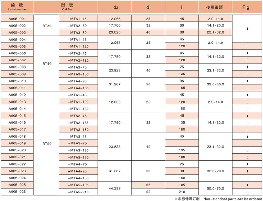 您當前的位置:雙陽首頁 - 產品中心 - 數控刀柄系統 - BT-MTA莫氏鉆頭刀柄